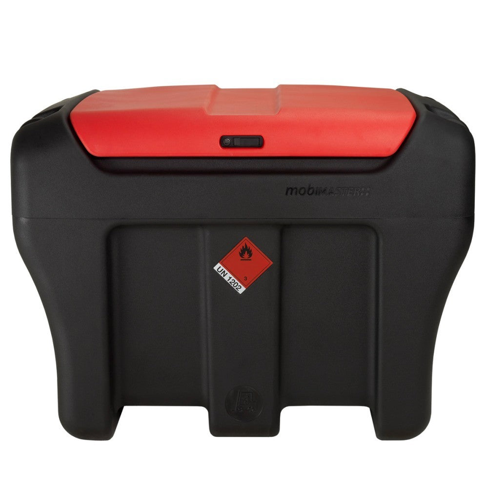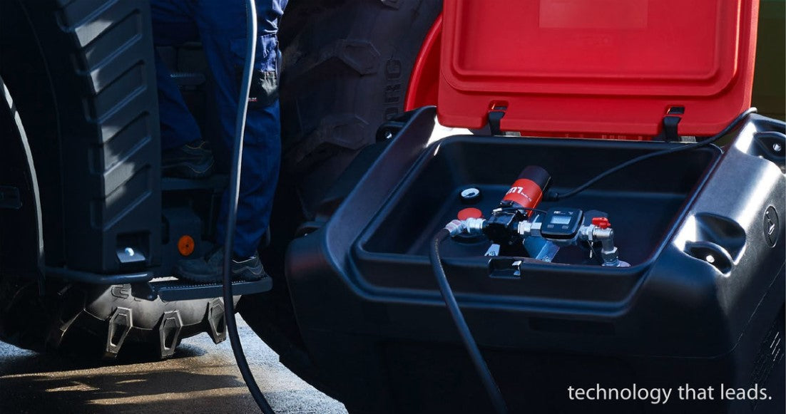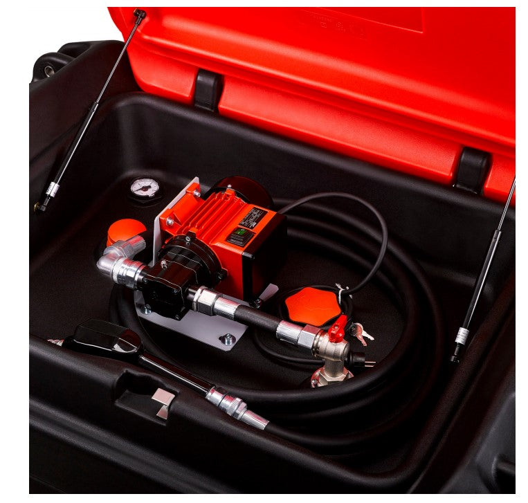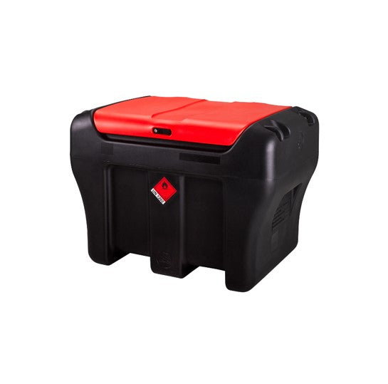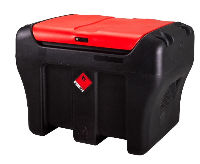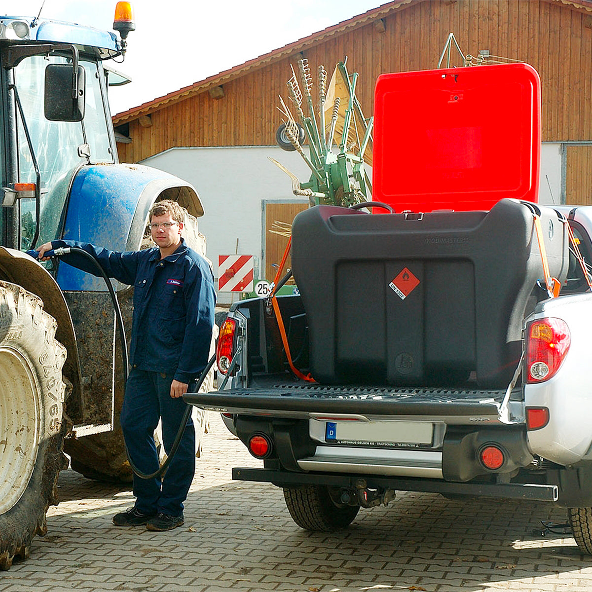Klar att använda med 4 meter påfyllningsslang, automatisk pistol, låsbart lock, tankmätare, lyftöglor och kan lyftas med pallgafflar eller schacklar.