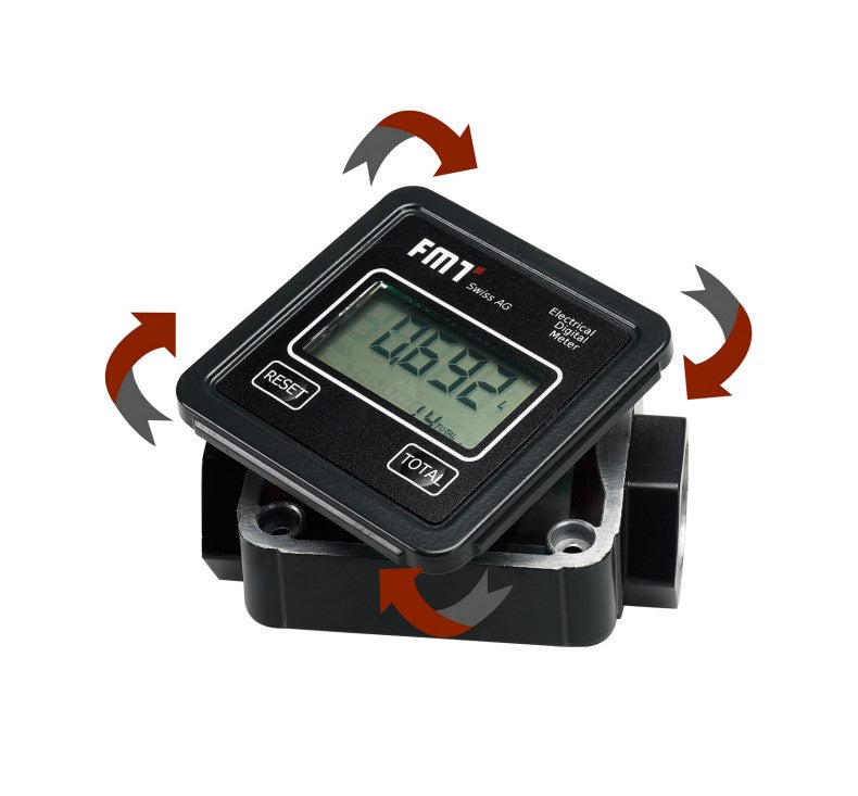 - Displayen kan justeras efter flödesriktningen i nittiograders steg