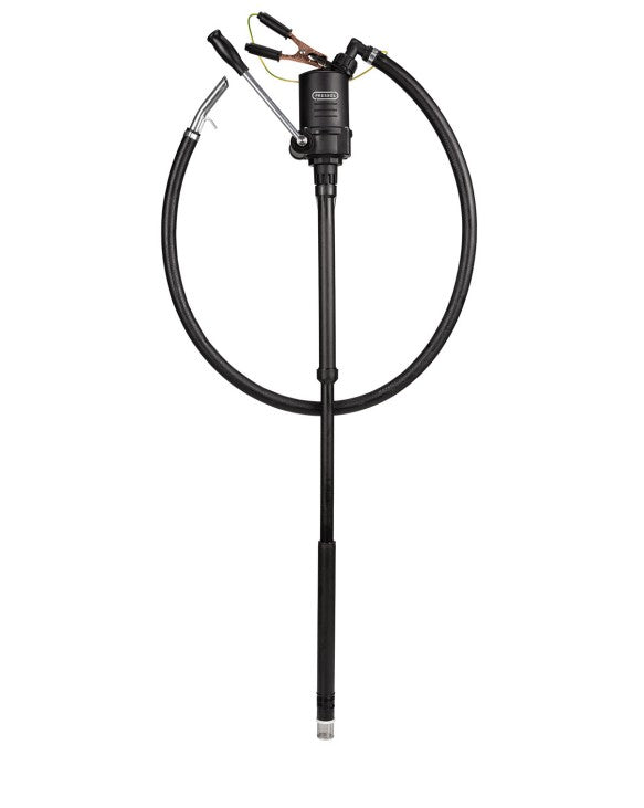 Setet innehåller ett teleskopiskt sugrör (justerbart 355-955 mm), fatadapter, avloppsslang och jordklämma.