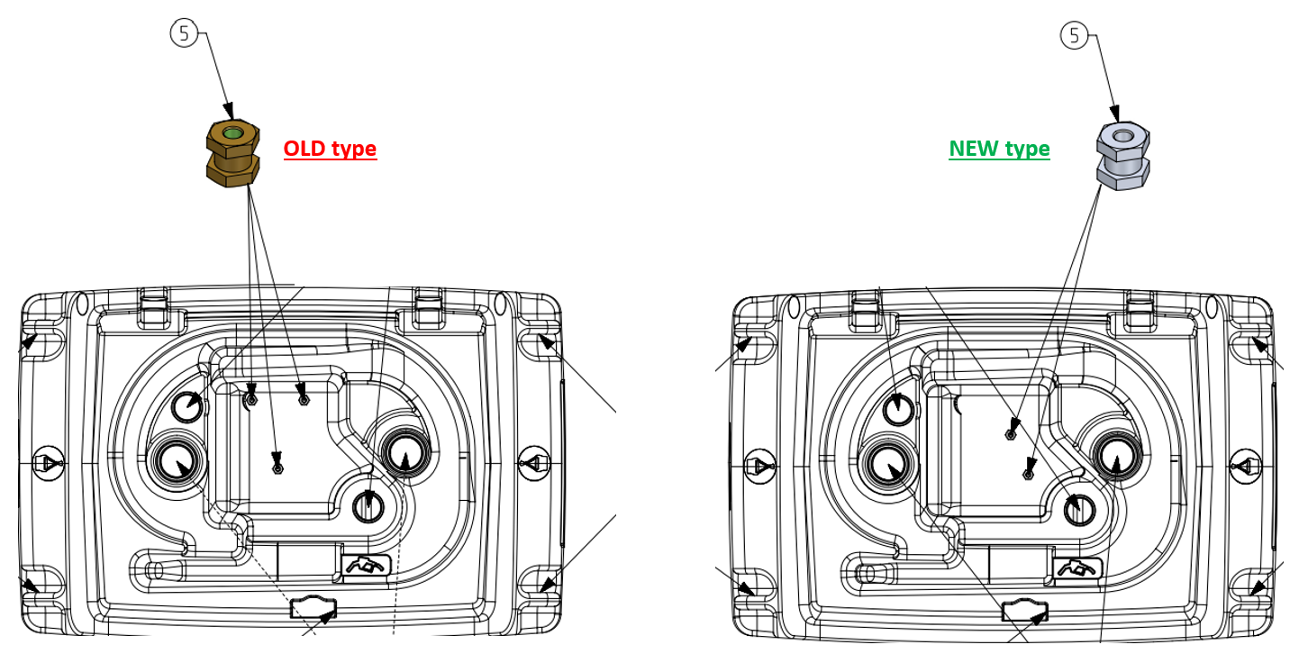 Två varianter av fästen - NY (2 insatser) och GAMMAL (3 insatser), se förklarande bild.