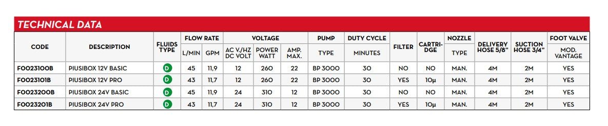 PIUSIBOX dieselpumpen blir därmed en viktig och pålitlig dieselpumpen som garanterar en snabb, säker och exakt bränsleöverföring.