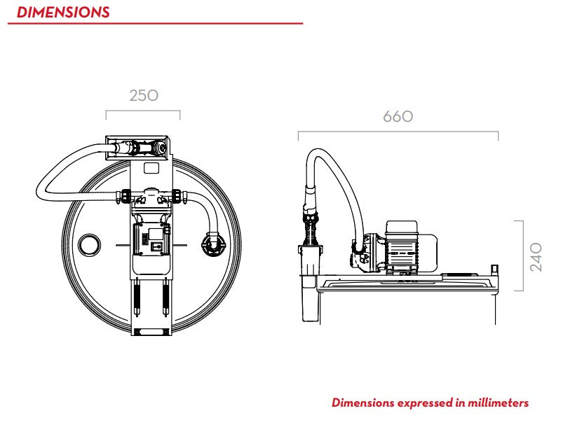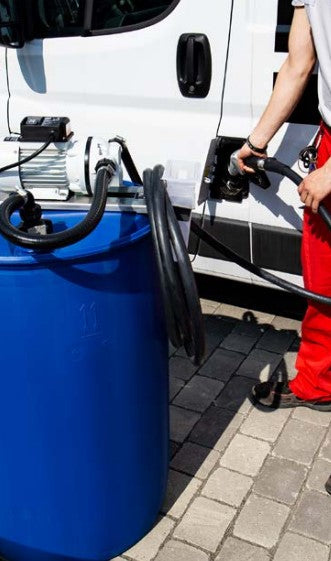 Membranpump med ett flöde på upp till 30 l/min, manuell påfyllningspistol med 6 m påfyllningsslang.