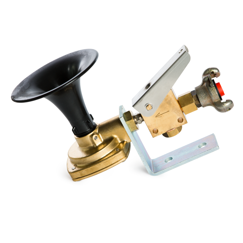 Luftdriven varningssiren som kan monteras direkt på exempelvis borriggen.